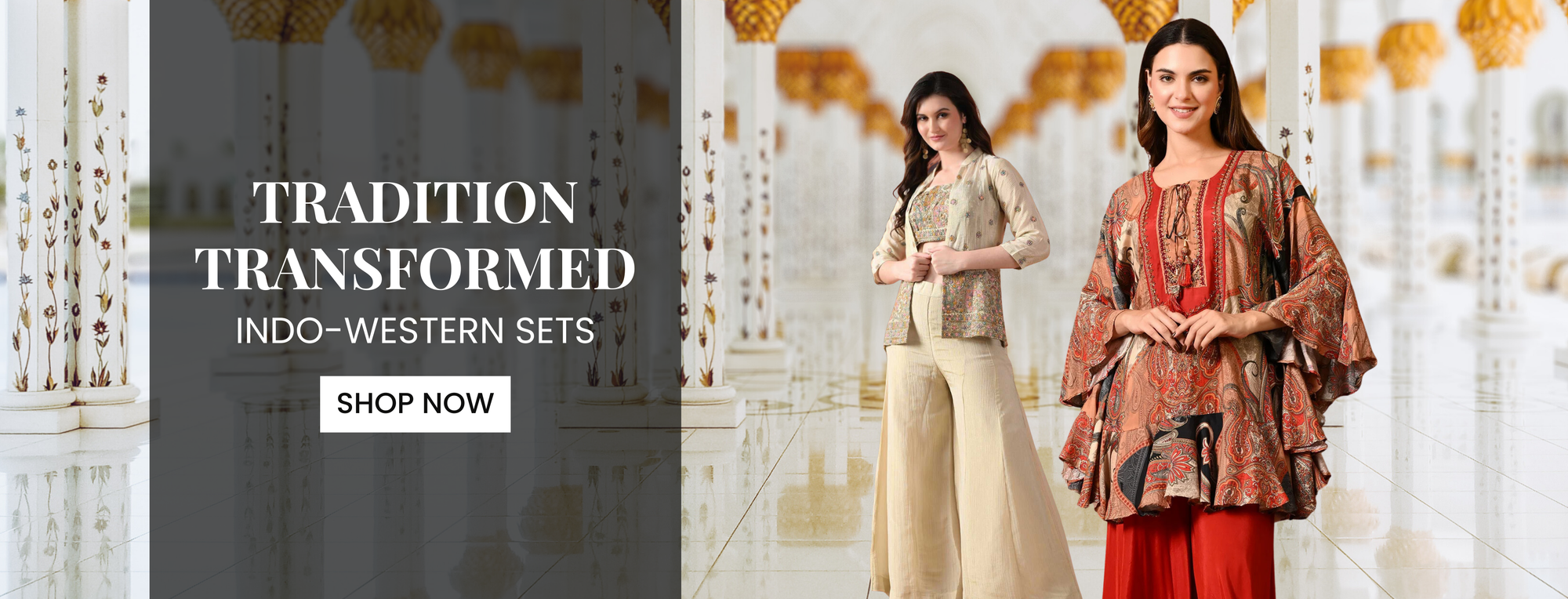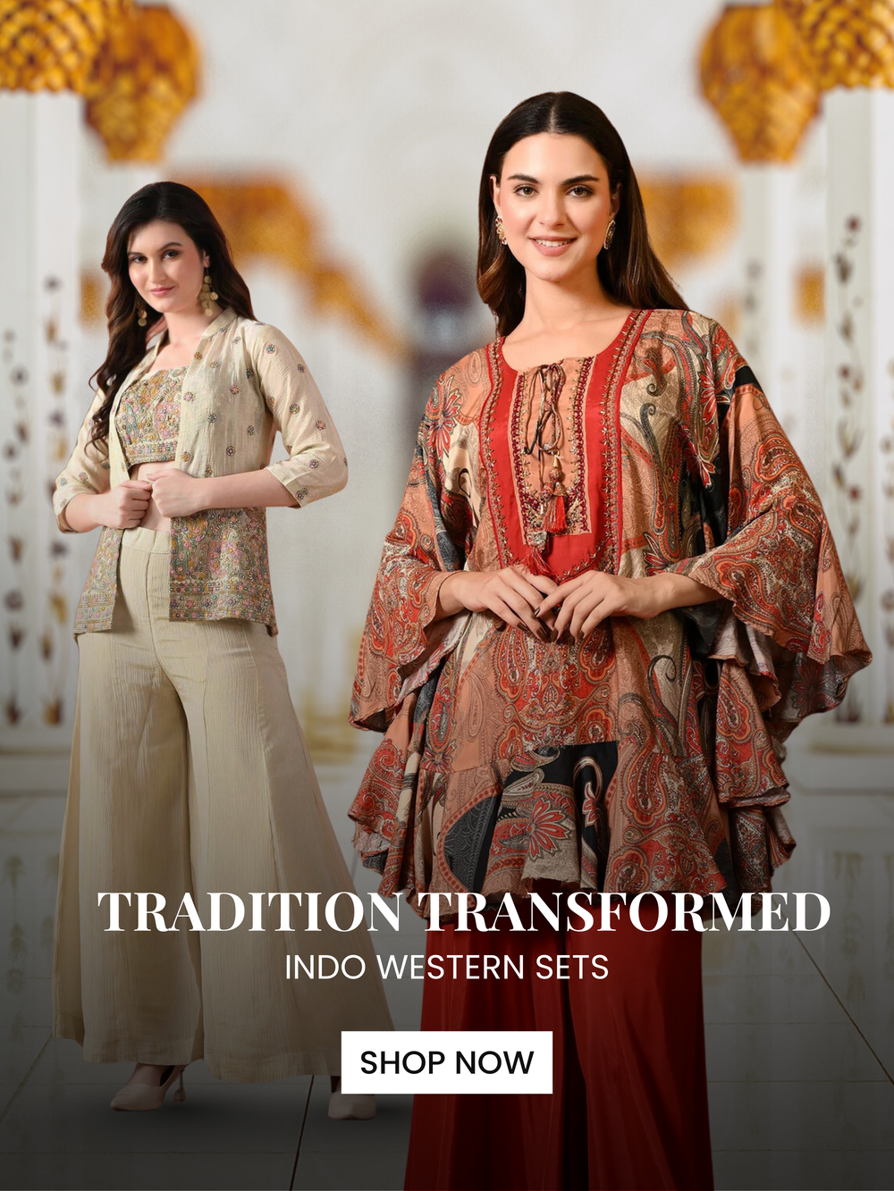 Indo-Western is an amalgamation of both Indian wear and western, a flexible modern look, a fashionable outfit which will impress others through this unique fusion look and the appeal for individuals wanting to honour the rich heritage of the Indian culture in dressing.