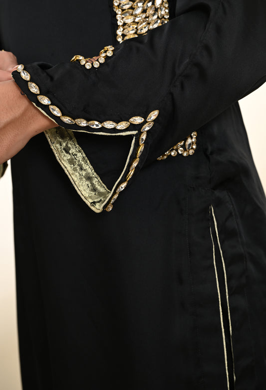 Sophisticated Black Kurta Set with Exquisite Crystal Embroidery
