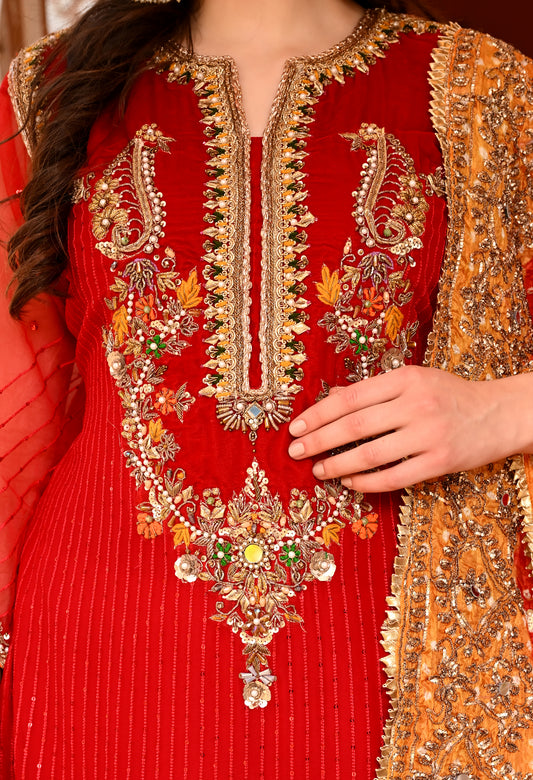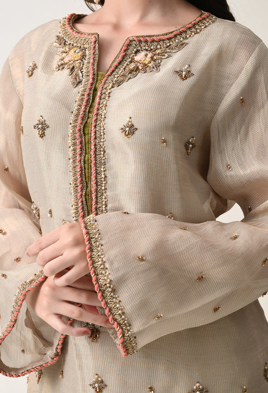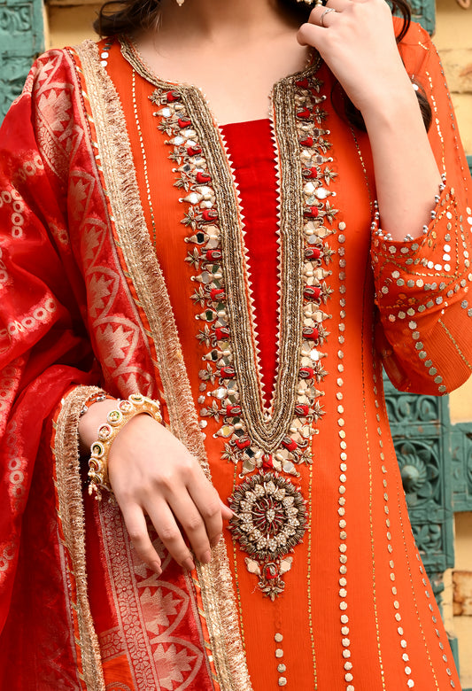 Timeless Orange / Green Kurta Set with Gotta, Sequence, Kora, and Dabka Work