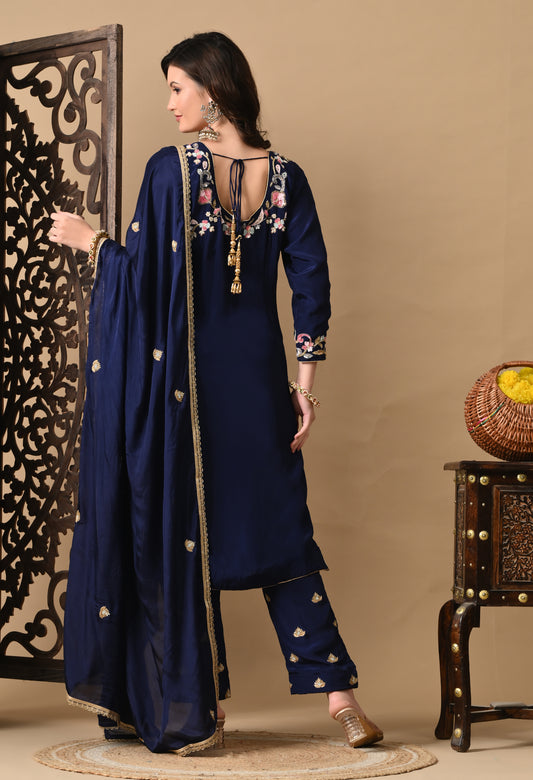 Navy Blue Zardozi Sippy Sequence Embroidered Crepe Kurta Set