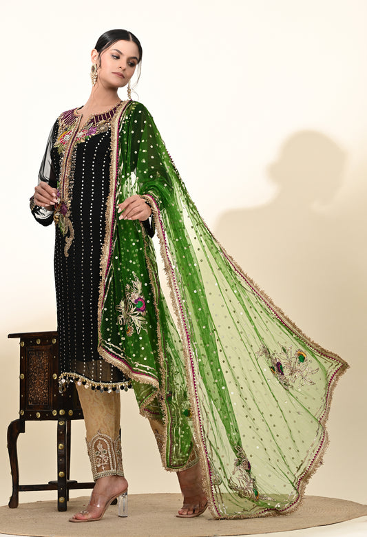 Striking Black Kurta Set with Elegant Zardozi Embroidery