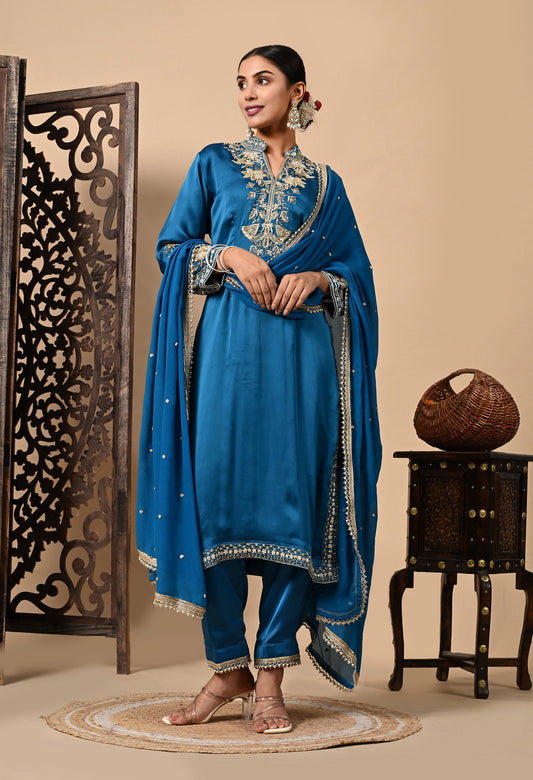 Royal Blue Kurta Set with Zardozi, Dabka, and Sequin Craftsmanship