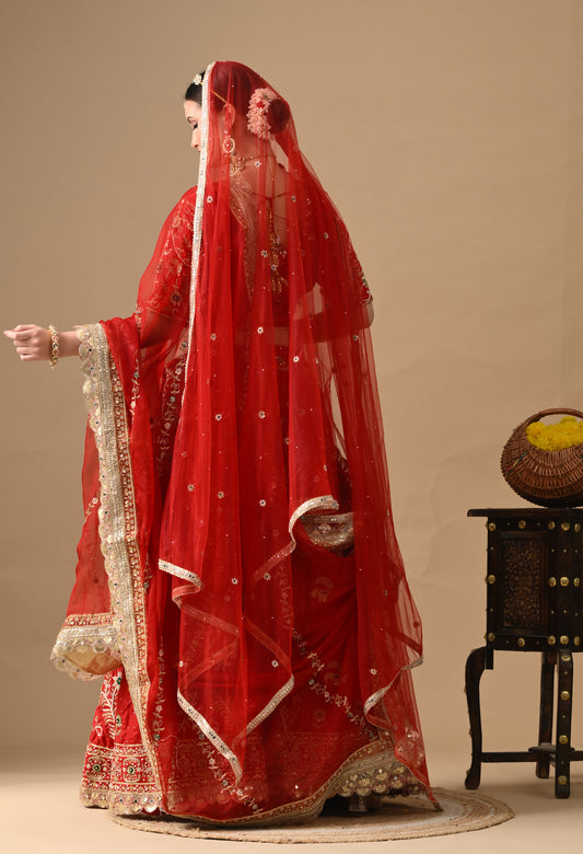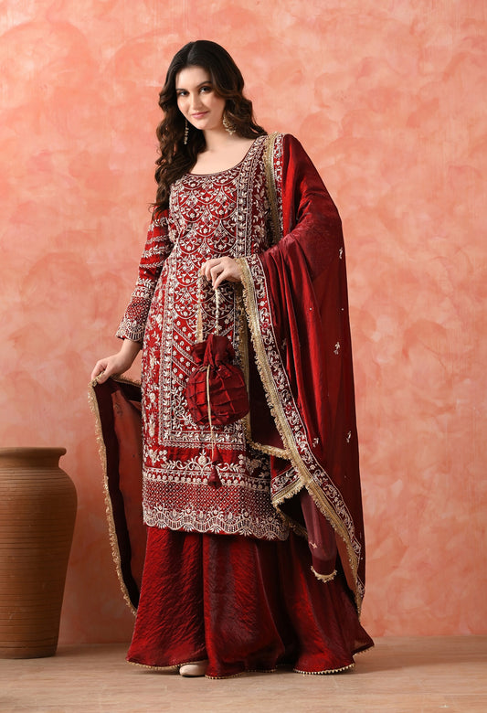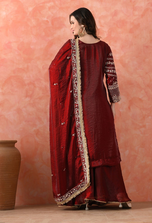 Maroon Red Kurta Set with Zardozi, Dabka, and Crystal Work