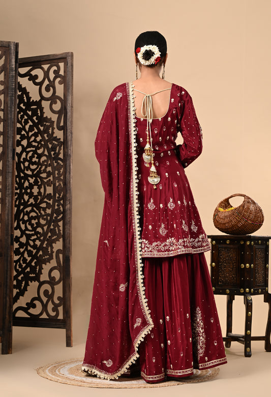 Maroon Gharara Set with Beautiful Zardozi, Dabka, Sequence, and Thread Work