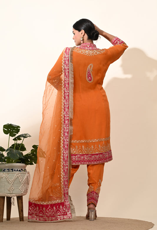 Vibrant Orange Kurta Set with Exquisite Zardozi Embroidery