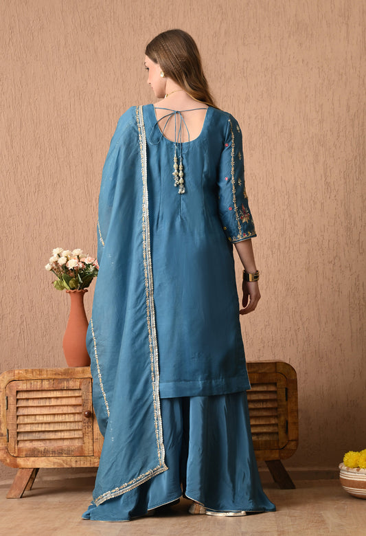 Sophisticated French Blue Organza Kurta Set with Exquisite Embroidery