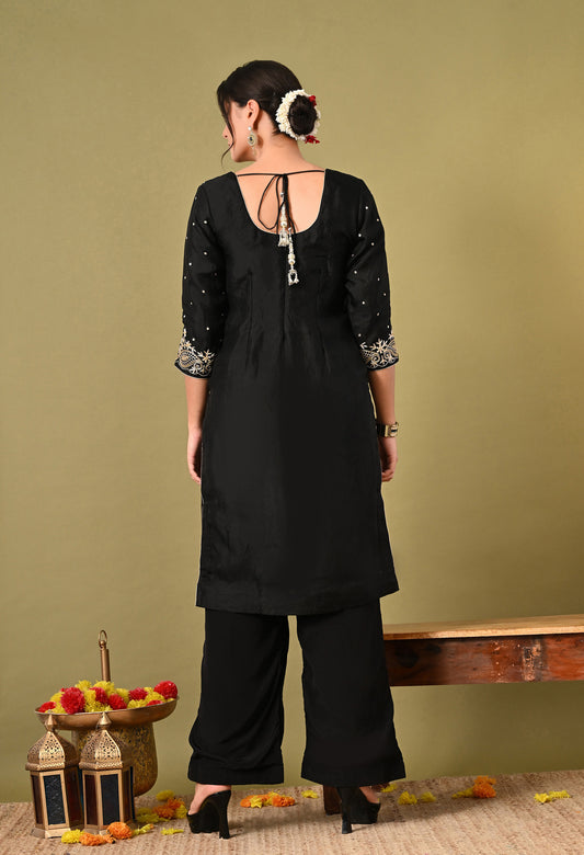 Majestic Black Organza Kurta Set with Zardozi and Tilla Embroidery