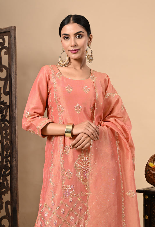Peach Kurta Set with Gotta, Mirror & Zardozi Work