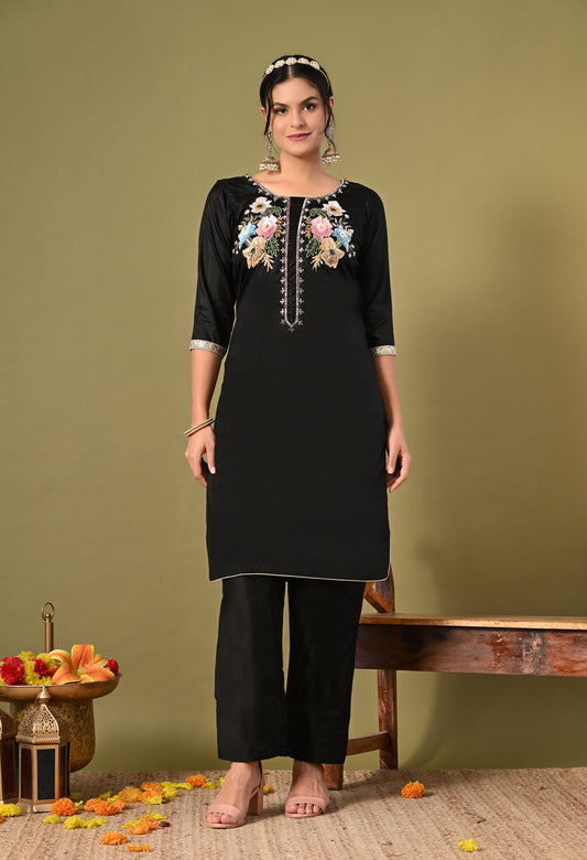 Charismatic Black Kurta Set with Zardozi, Sequin, Sippi, and Thread Work