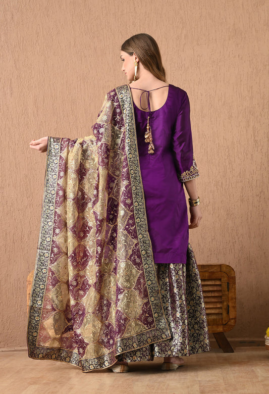 Beautiful and Regal Purple Kurta Set with Gota Patti, Zardozi, and Sequin Work