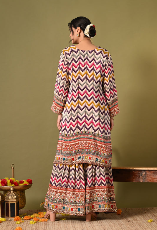 Breathtaking Purple Gharara Set with Zardozi and Sequence Work