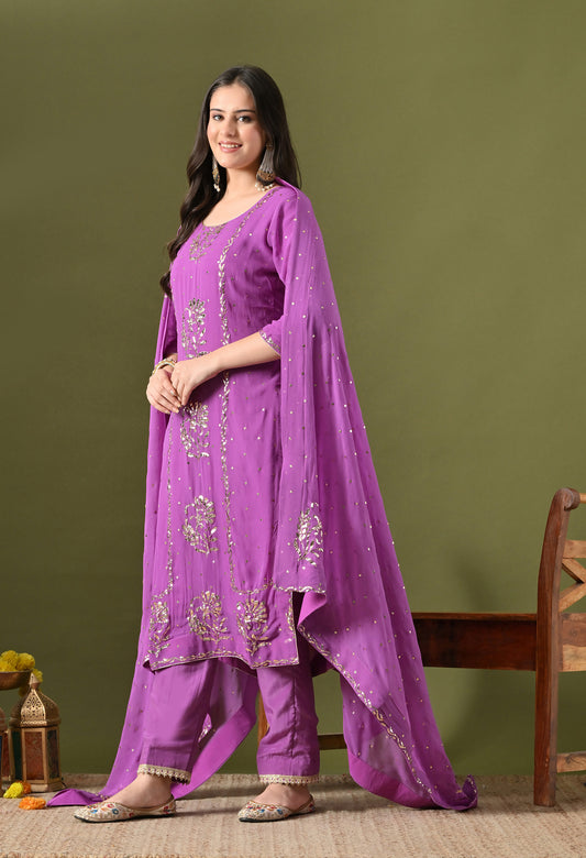 Beautiful and Regal Purple Kurta Set with Gota Patti, Zardozi, and Sequin Work