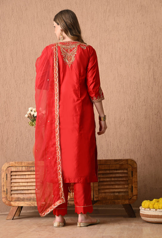 Red Kurta Set with Zardozi, Sequin & Applique Work.