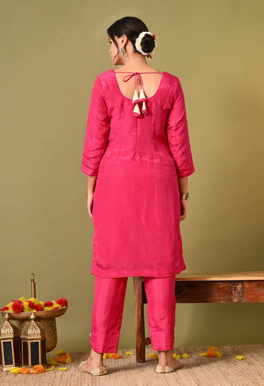 Vibrant and Graceful Reddish Pink Kurta Set with Parsi Work