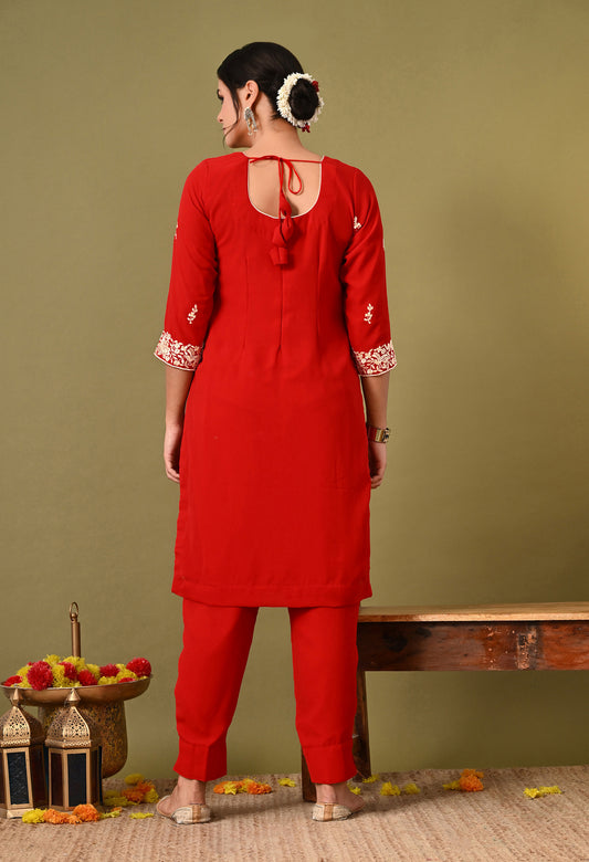 Mesmerising Red Kurta Set with Excellent Craftsmanship of Parsi Work