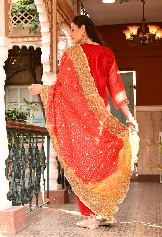 Etheral & Elegant Red Kurta Set with Gota Patti, Zardozi, and Sequin Work