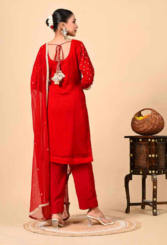 Red Kurta Set with Zardozi, Sequin & Applique Work.