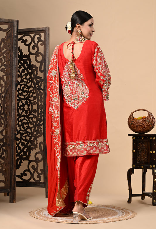 Red Kurta Salwar Set with Zardozi, Sequin & Applique Work.