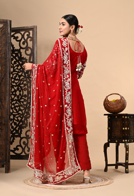 Red Kurta Set with Gota Patti, Applique, Zardozi, and Sequin Work