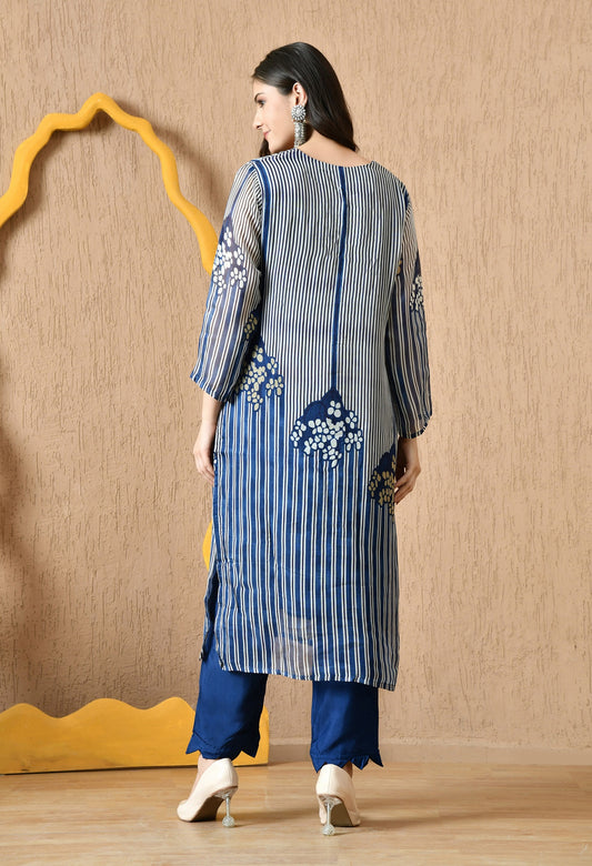 Elegant Blue Kurta Set with Sequin & Pearl Work
