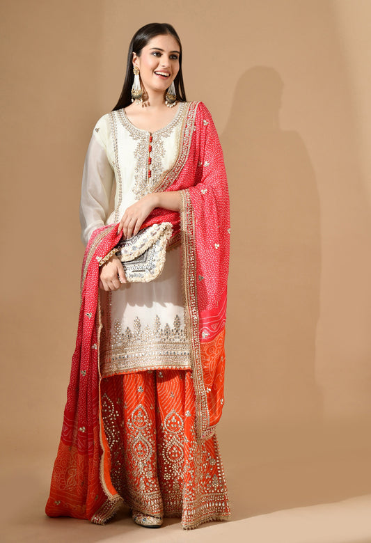 Cream Chinon Sharara Set with Gotta & Zari Work