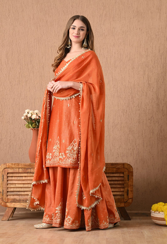 Vibrant Orange Kurta Set with Exquisite Zardozi Embroidery