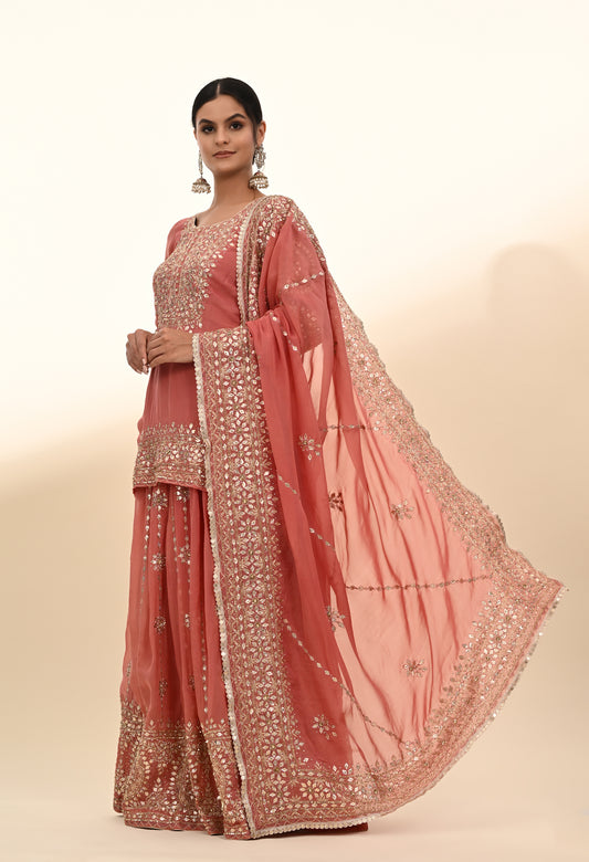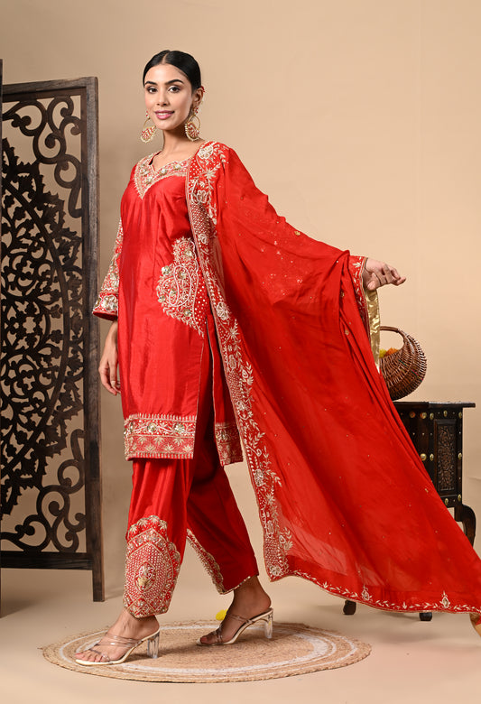 Red Kurta Set with Zardozi, Dabka, Sequin, and Pearl Work