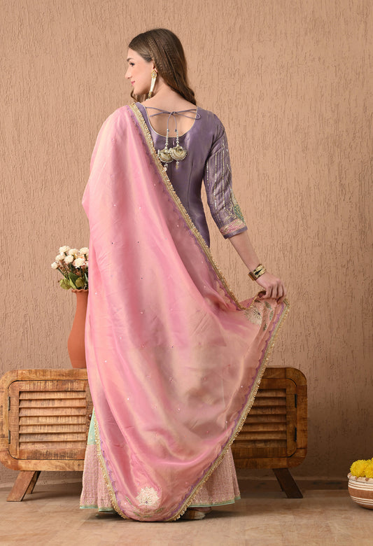 Exquisite Purple Lehnga Set with Zardozi, Sequence, and Applique Work