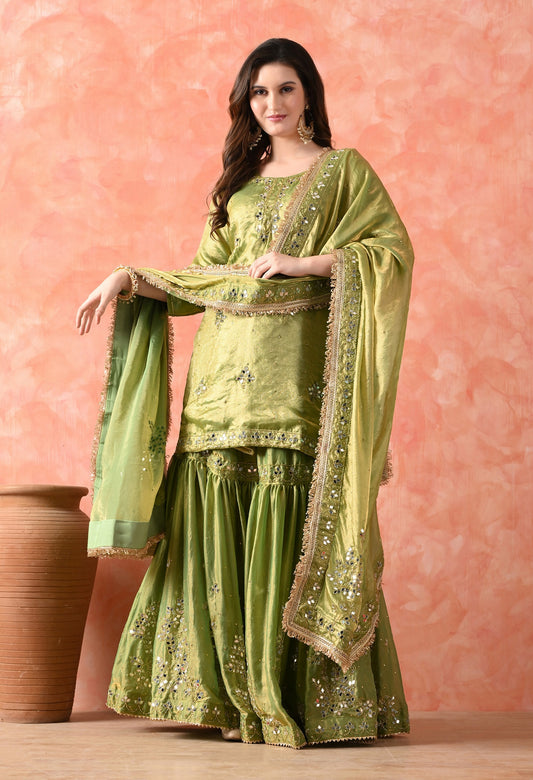 Green Silk Anarkali Set with Zardozi & Appliqué Embroidery