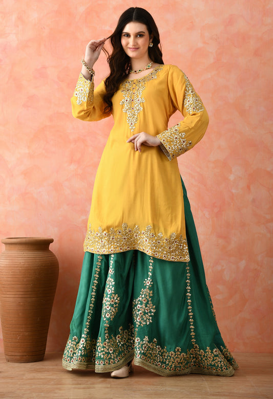 Yellow Kurta Set with Thread, Pearl & Zardozi Work
