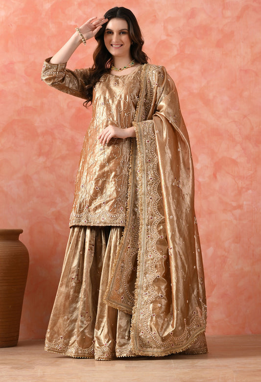 Golden Gharara Set with Zardozi & Kundan Embroidery