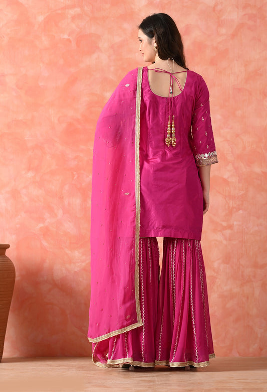 Rani Pink Glass Silk Zardozi Gharara Set