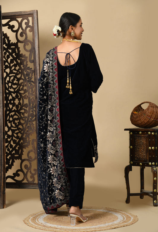 Navy Blue Hue Kurta Set with Zardozi, Thread, and Crystal Work