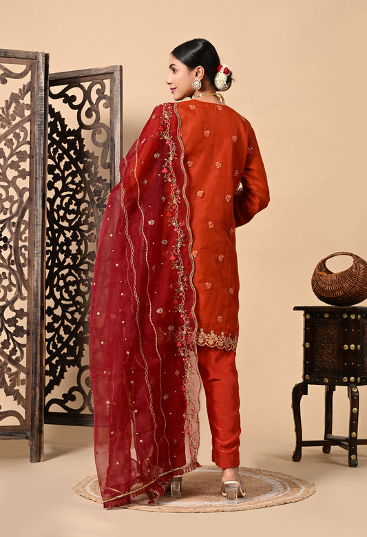 Dark Orange Kurta Set with Gota Patti, Thread, Dabka, and Zardozi