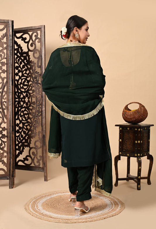 Bottle Green Kurta Set with Zardozi, Dabka, Sequin, Thread, and Pearl Work