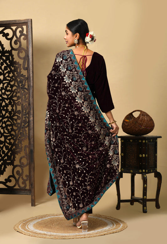 Dark Wine Kurta Set with Zardozi, Thread, and Crystal Work