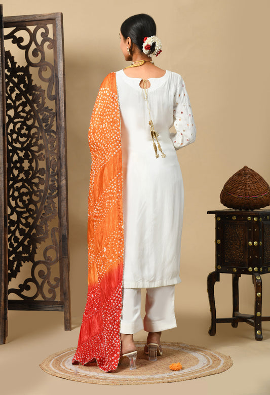 Cream Kurta Set with Gota Patti, Thread, and Mirror Work