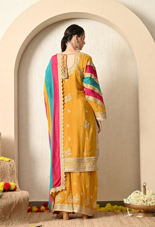 Mustard Yellow Kurta Set with Beautiful Thread and Zari Work