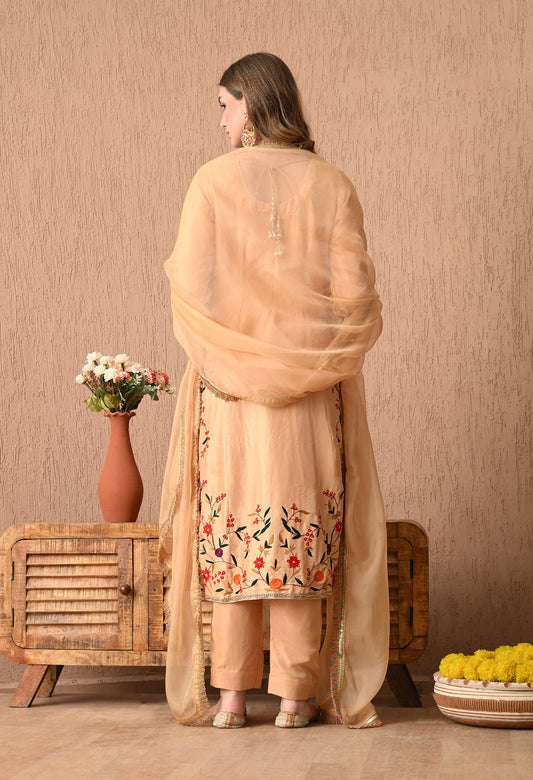 Yellowish Orange Kurta Set with Exceptional Thread & Applique Work