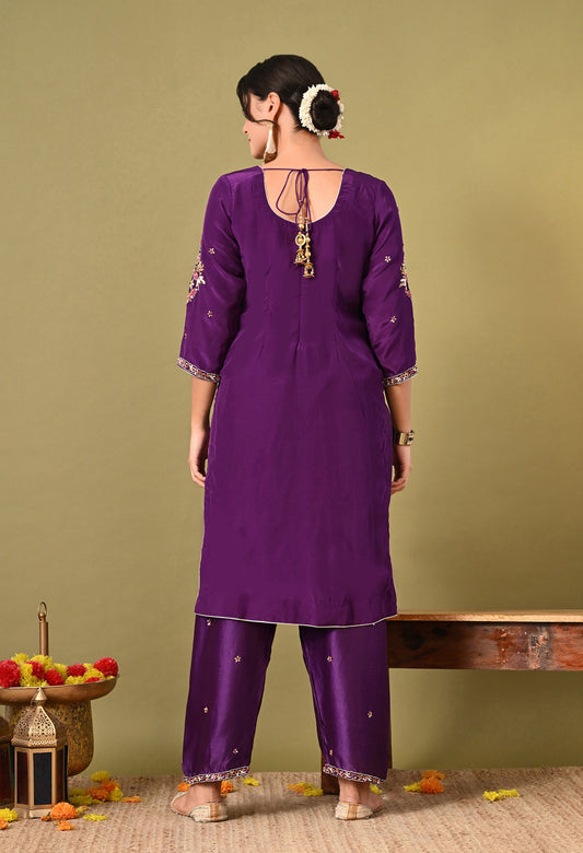 Mesmerising Royal Purple Kurta Set with Beautiful Zardozi, Thread, and Sequin Work