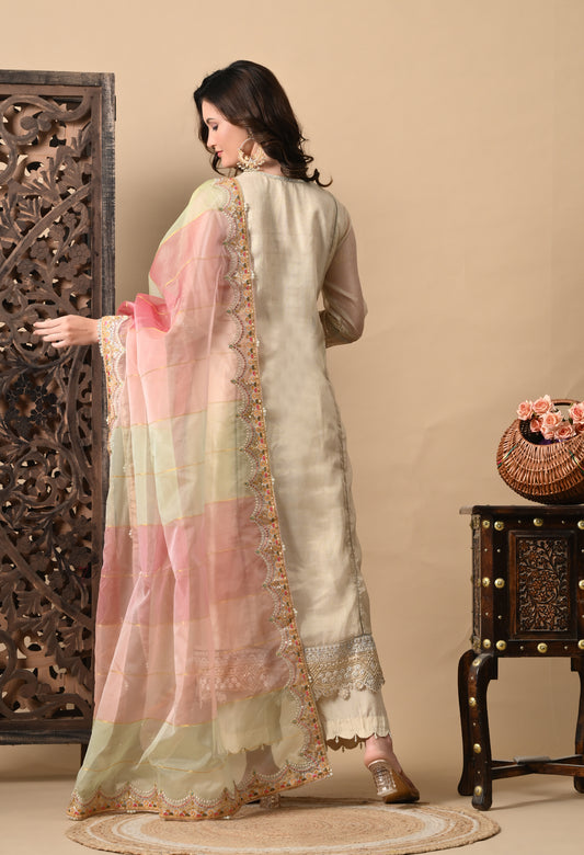 Delicate Light Cream Kurta Set with Intricate Thread Work