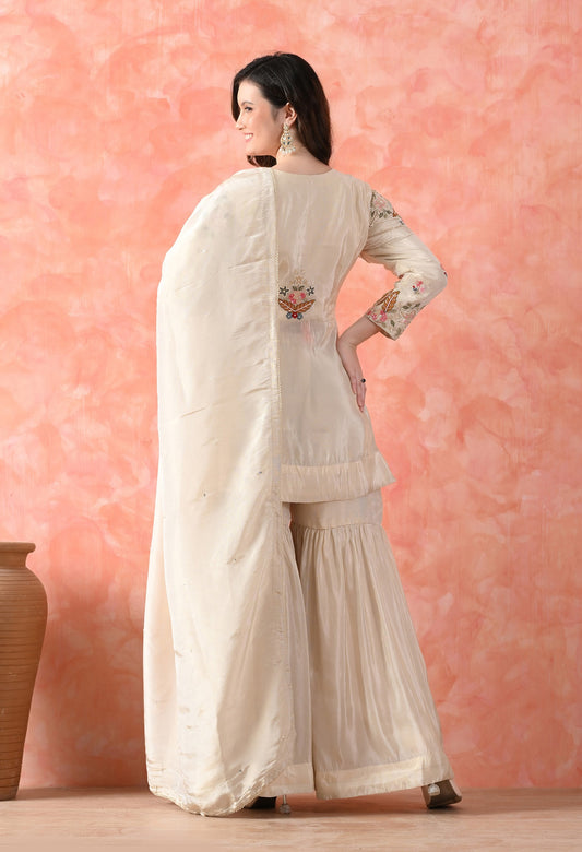 Golden Cream Kurta Set with Farshi Salwar & Zardozi Work