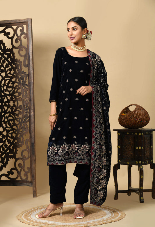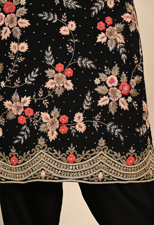 Striking Black Kurta Set with Elegant Zardozi Embroidery
