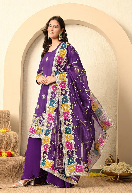 Bright Purple Kurta Set with Zardozi, Sequence, Cutdana, and Naqshi Work