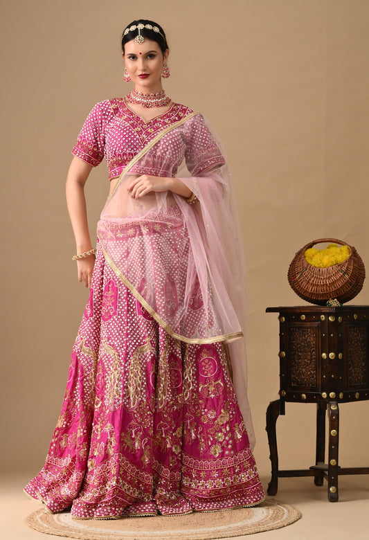 Dark Pink Anarkali with Zardozi, Sippy, Sequin, and Mirror Work