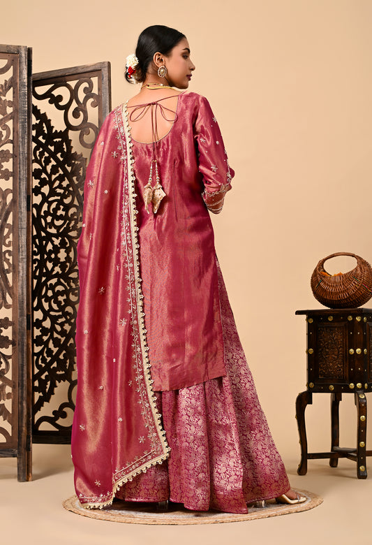 Wine Glass Silk Zardozi–Sequin Sharara Set