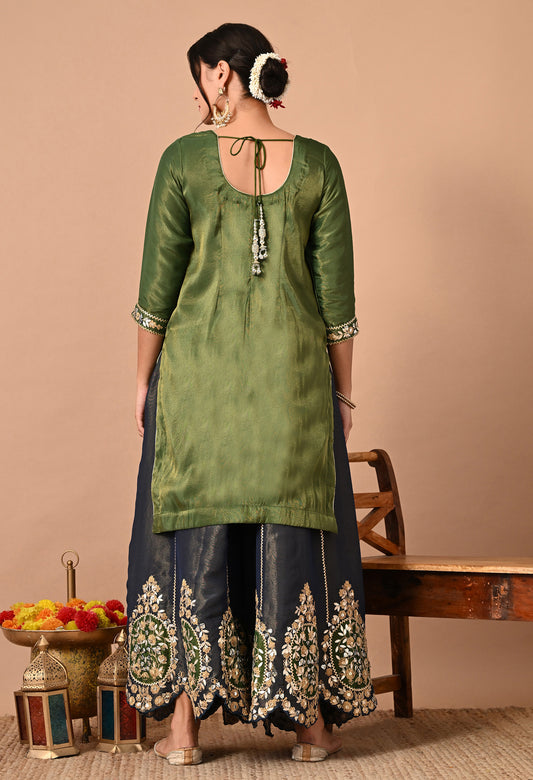 Exquisite Green Sharara Set with Zardozi, Dabka, Cutdana, and Gotta Work