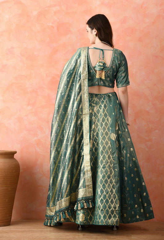 Green Zardozi Pearl Work Lehenga Set