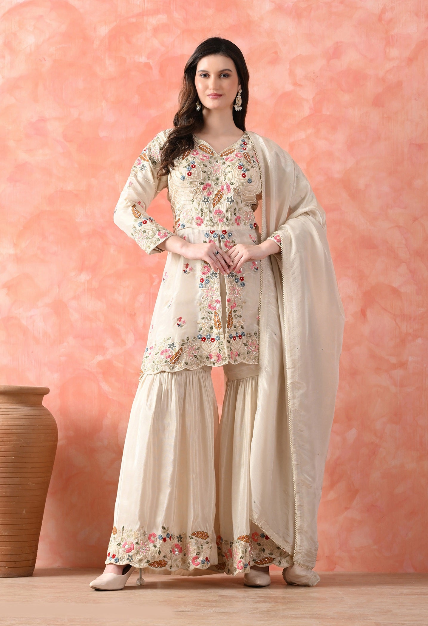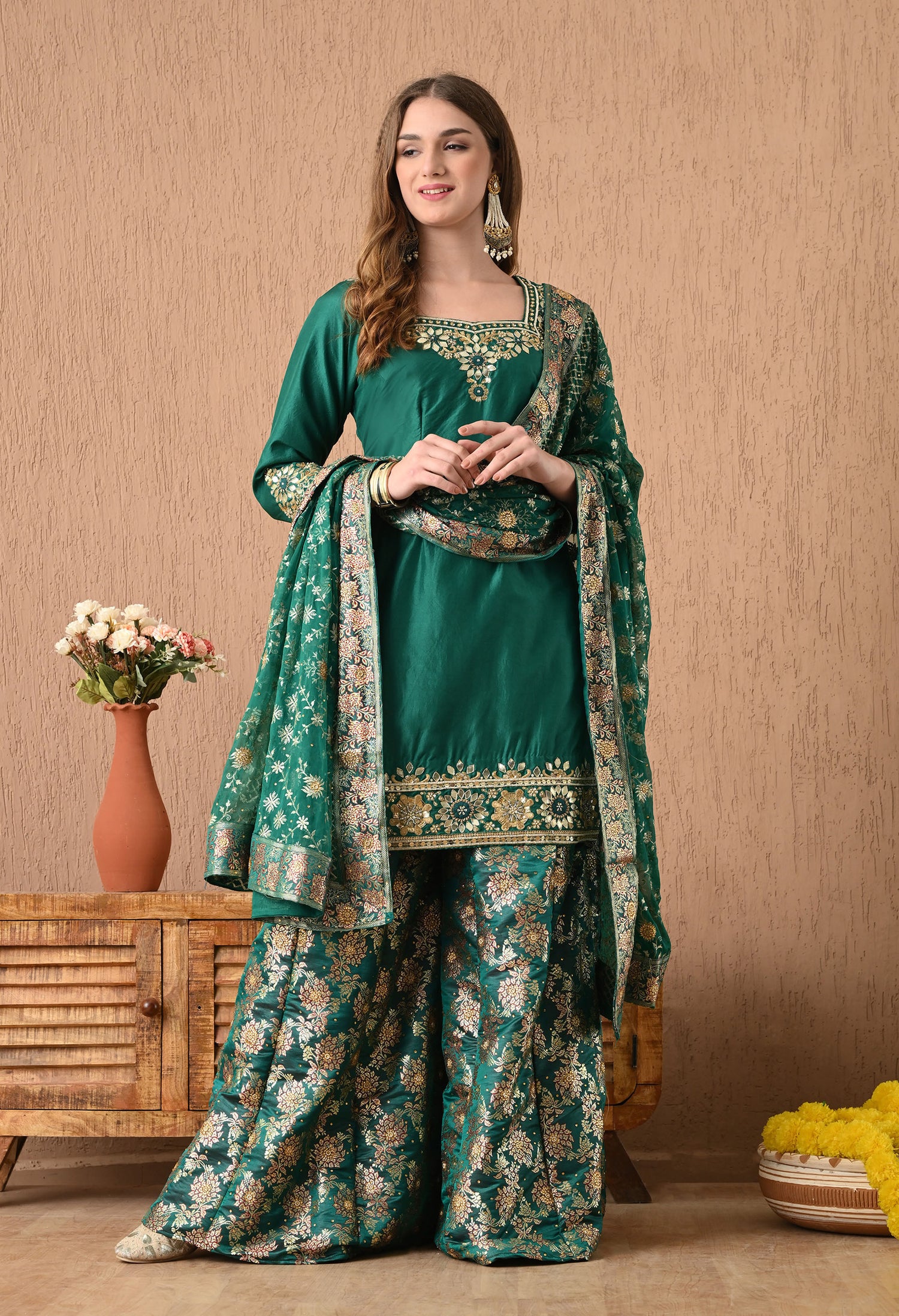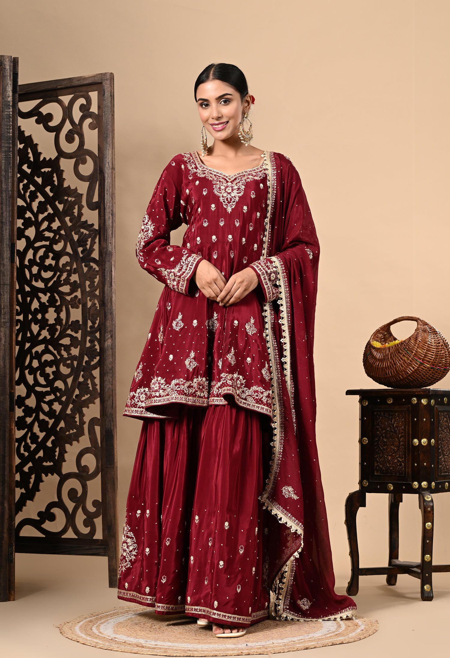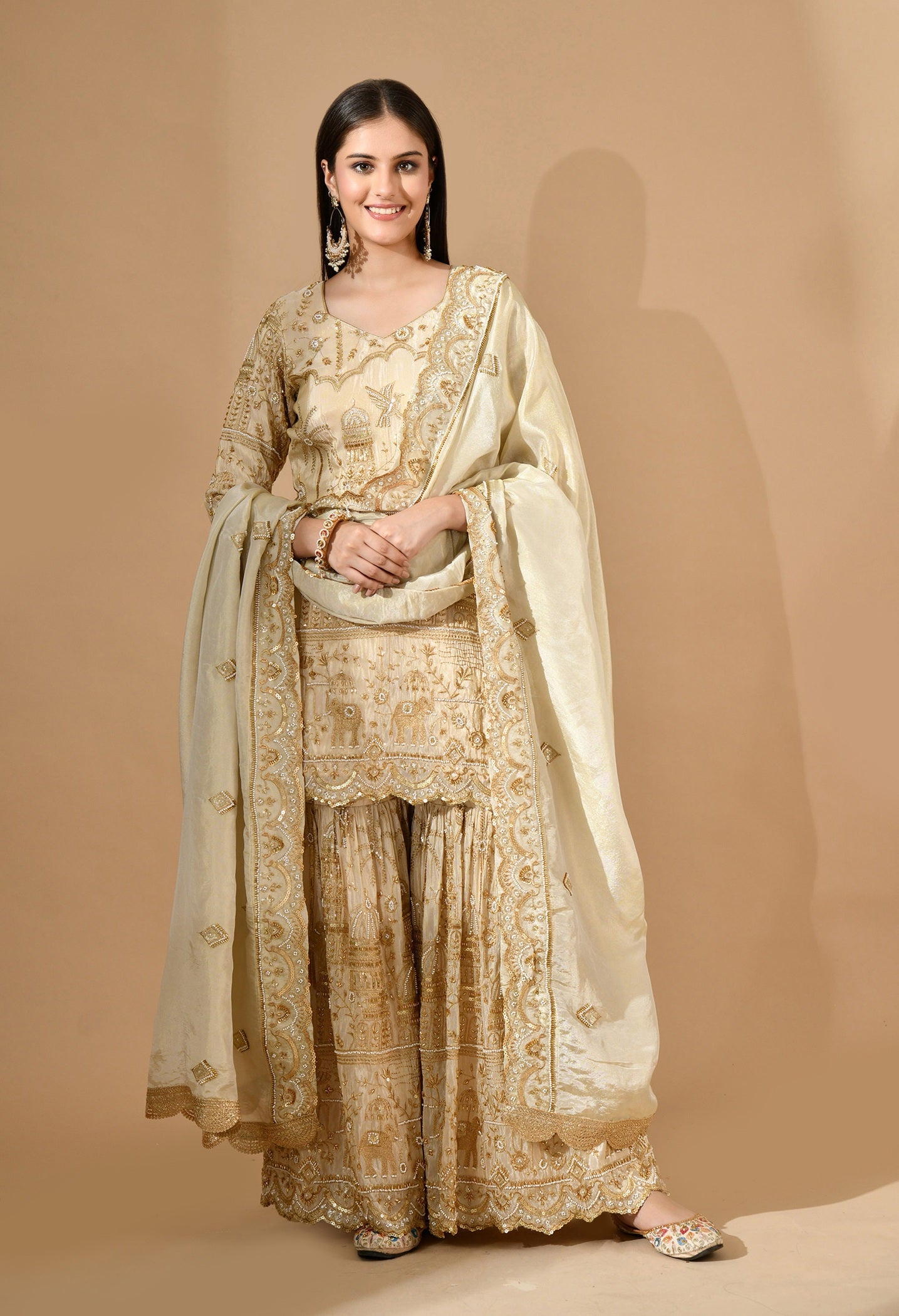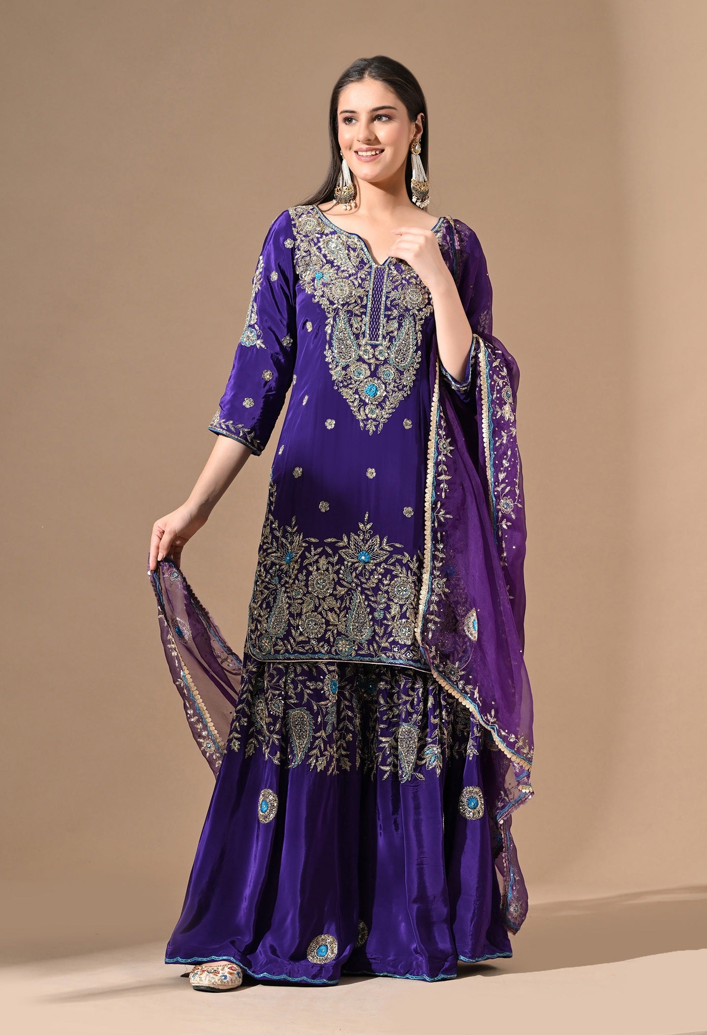 Buy hand embroidered Sharara and Gharara that are crafted with intricate artistry...