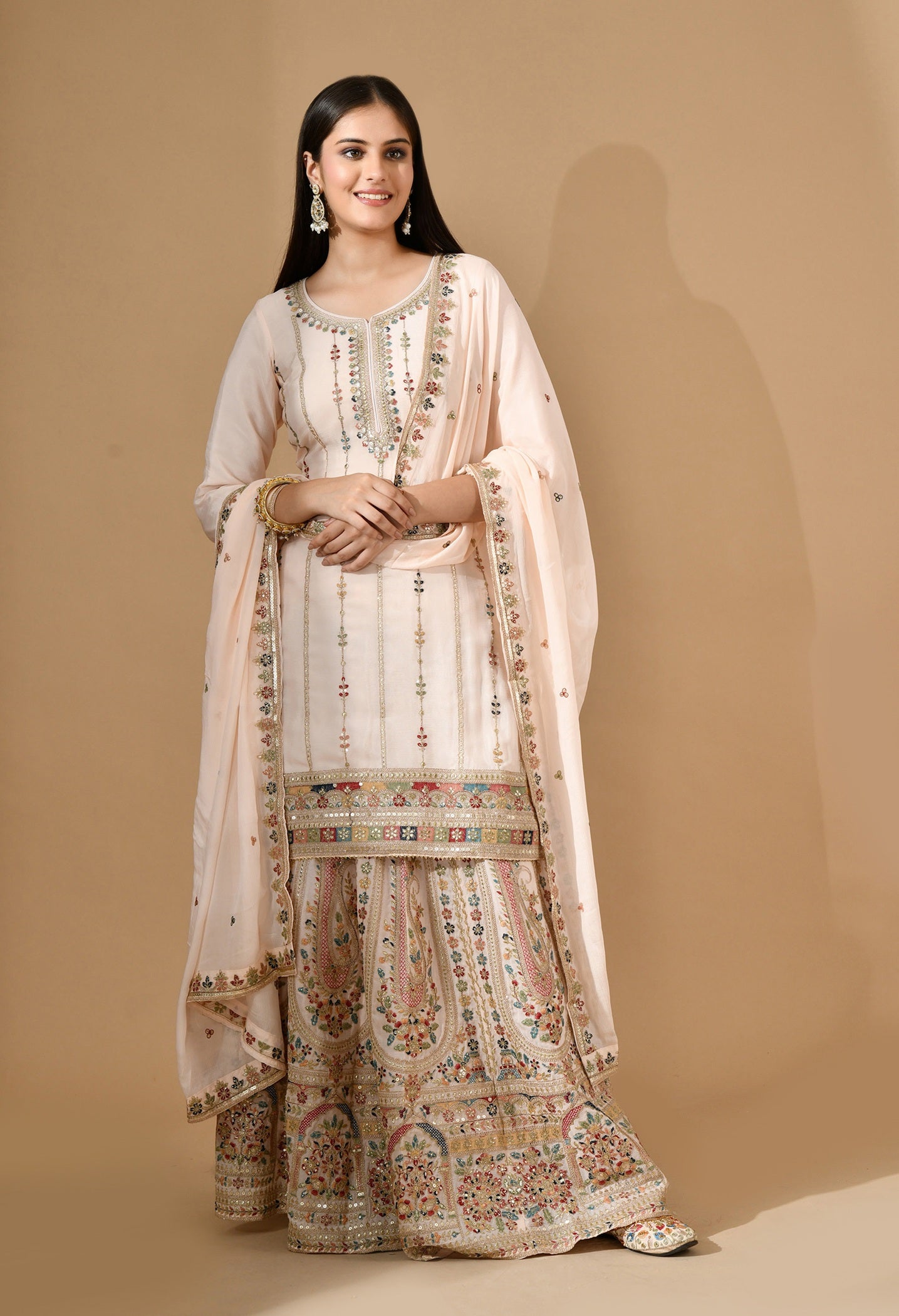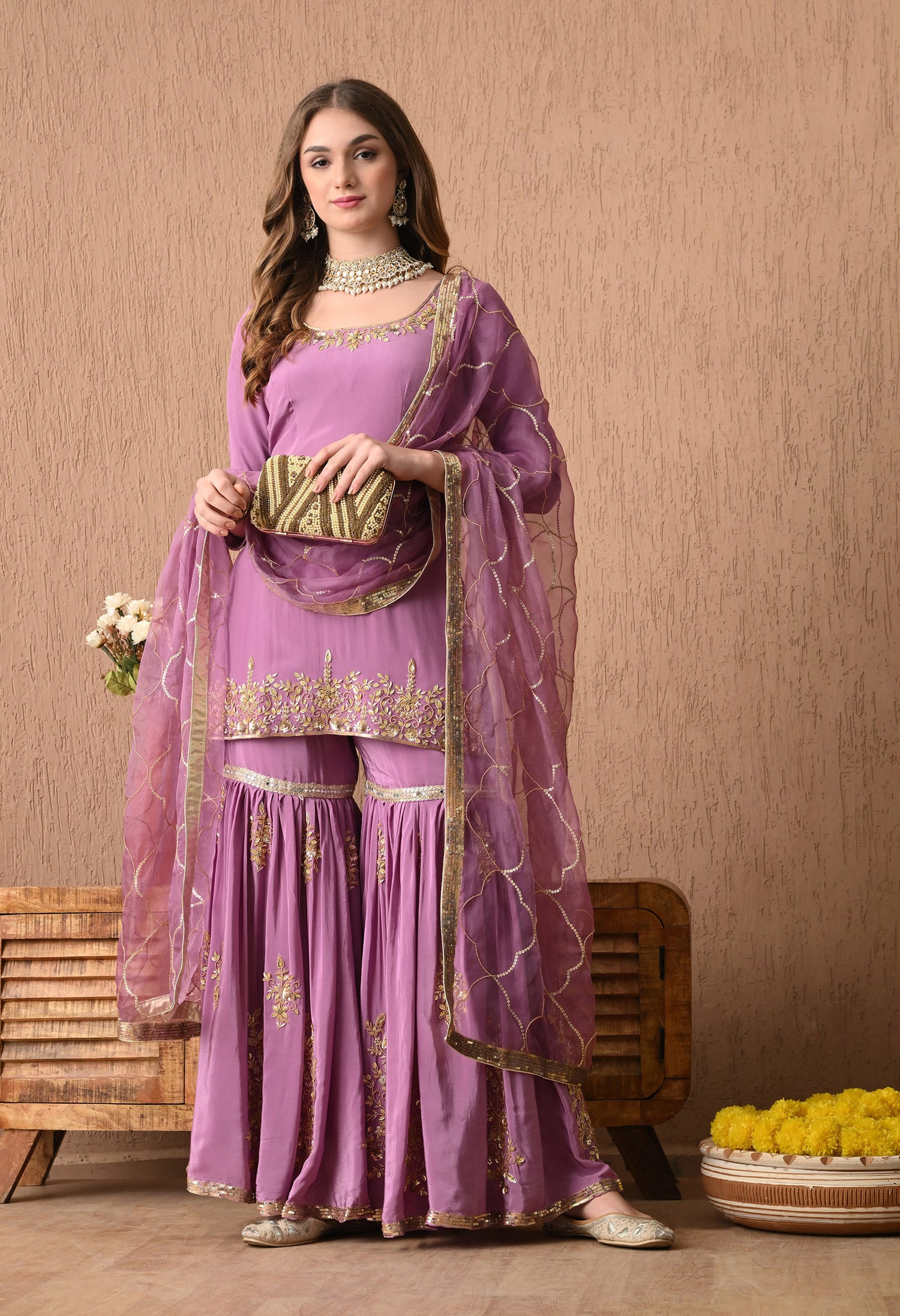 Buy hand embroidered Sharara and Gharara that are crafted with intricate artistry...